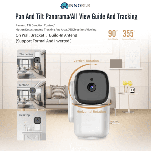Move 355 degrees horizontally and 90 degrees vertically. You can use multiple installations to install the monitor anywhere in your home to protect your family